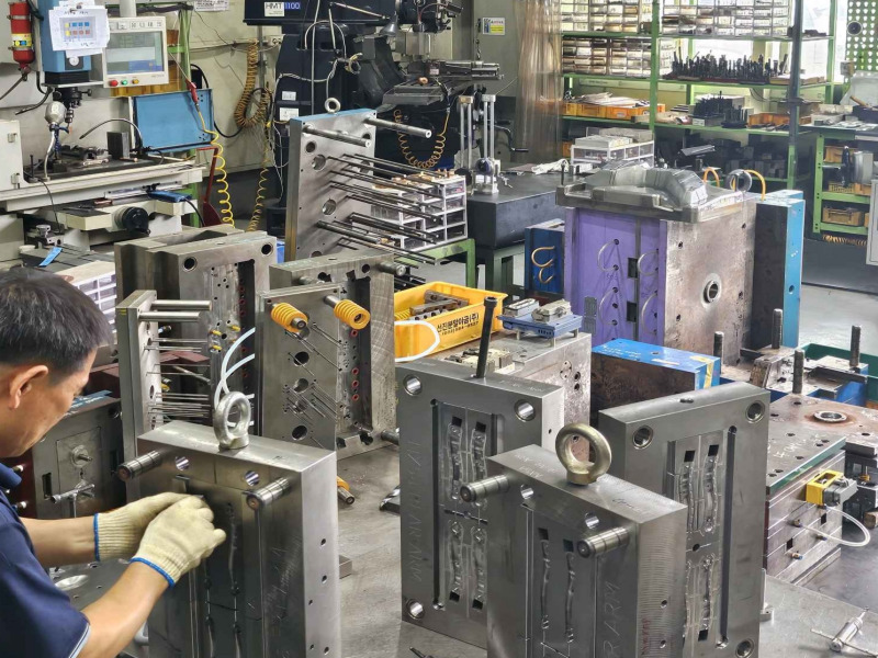 공 정 금형설계/금형제작 사 출 용착/조립 · 검사 금형설계/금형제작 1. 고객측 제품 제작 요청디자인 및 데이터 (도면 등)확인 및 견적 진행 2. 제품 및 금형 설계제조할 제품의 디자인 결정제품 3D 모델링 설계금형 3D 모델링 설계(실제품의 크기,형상,재료 흐름 등을 고려) 3. 금형 제작재료선정(내마모성과 열처리 가능성 고려)가공 및 제작(CNC 선반, 밀링 등)열처리 및 표면처리 4. 금형 조립 및 시운전조립(가공된 금형 부품 조립)시운전 및 테스트, 문제점 수정(작동 및 품질 확인) 5. 시험 생산 원,부자재 준비 사출 성형기 준비 사출성형 및 제품 확인 6. 품평회 개발현황점검